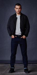 - Slim-fitting Straight fit Stretch-leg jean with low rise and zip fly